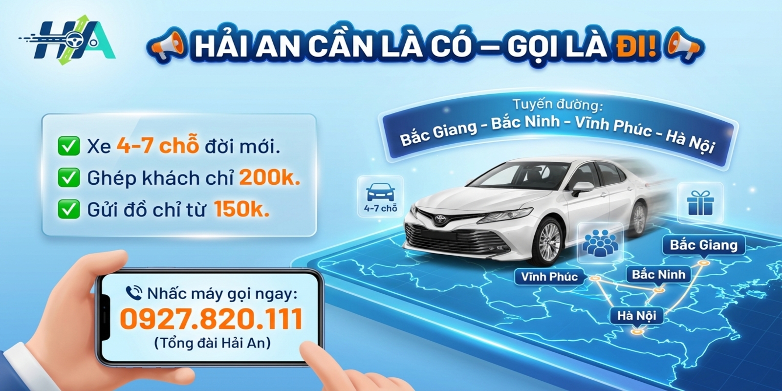 Tổng Đài Xe Ghép Hải AnXe ghép Hà Nội đi Bắc Giang, Bắc Ninh, Vĩnh Phúc - Đón tận nơi, hỗ trợ 24/7